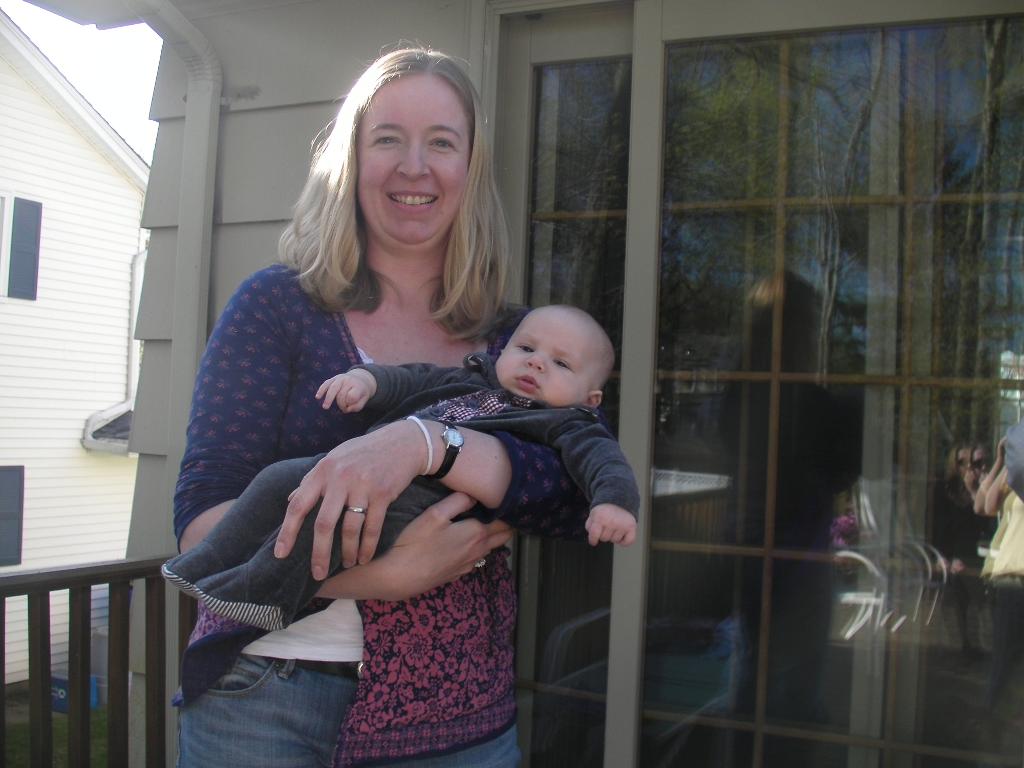 First, it was my birthday, and we celebrated with a visit from my brother, Brian! We hadn't seen him since last summer, so it was great for him to come out and see Seth and meet Evan! Uncle Brian and Geema cooked me a wonderful birthday dinner, which was a nice treat. Jason had to spend most of that weekend busy with school duties, so it was very nice to have Geema and Brian around. Seth was very excited to be reunited with Uncle Brian. We spent lots of time on walks and at playgrounds, and Seth had so much fun! We spent a day in Wethersfield - we showed Seth the house where we grew up, which he thought was interesting. He's still trying to wrap his head around the fact that Geema is my mother, that we had relationships before he was born! We also spent a nice evening when Brian was here with Aunt Michele and Uncle Bill, and cousin Jason got to meet Evan.